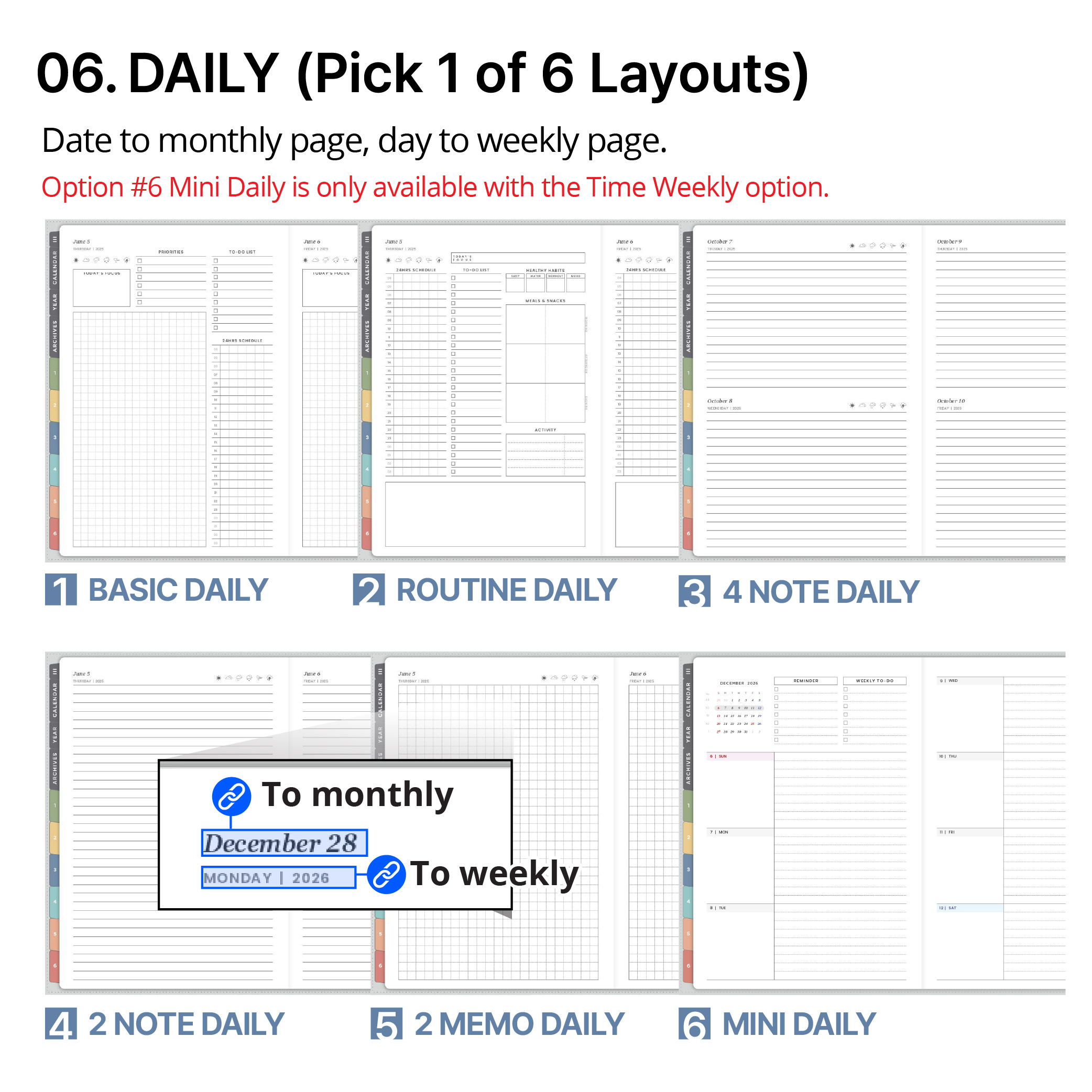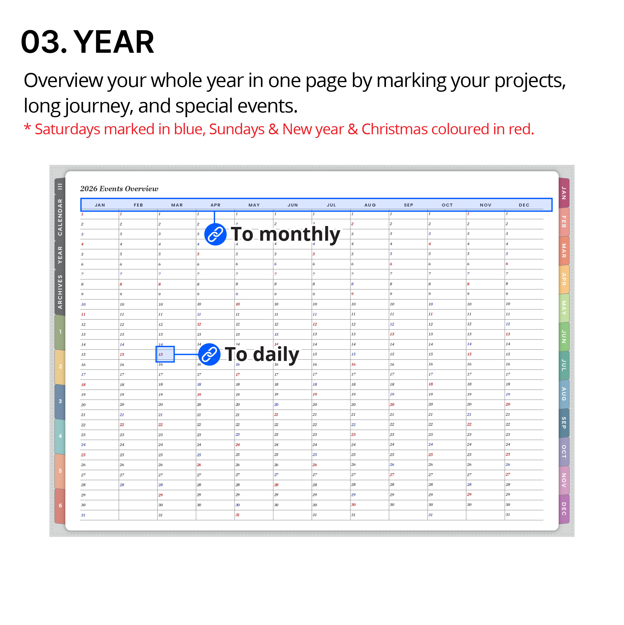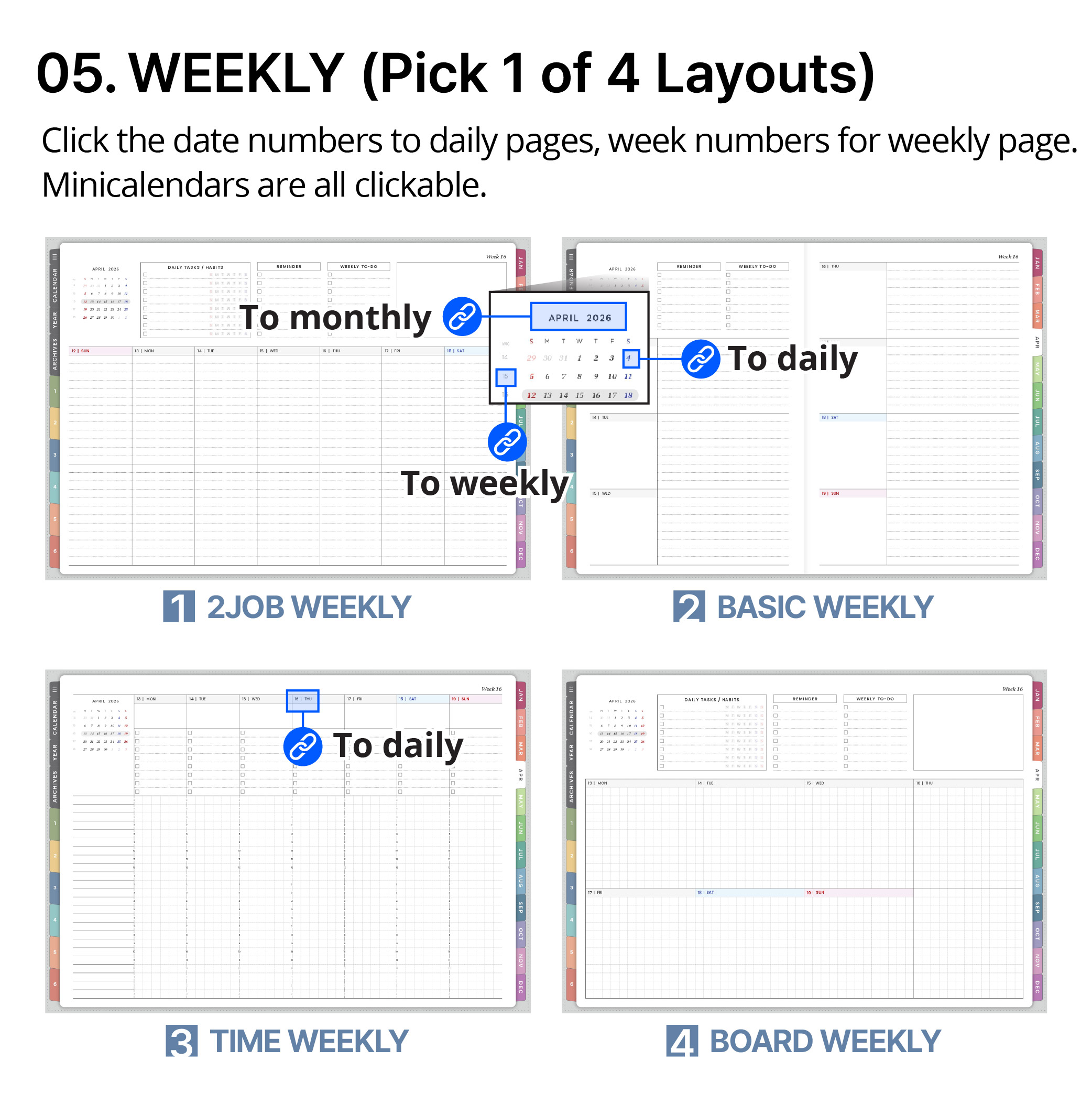 • 하이퍼링크 시스템: 클릭 한 번으로 월간/주간/일간 이동 끝!