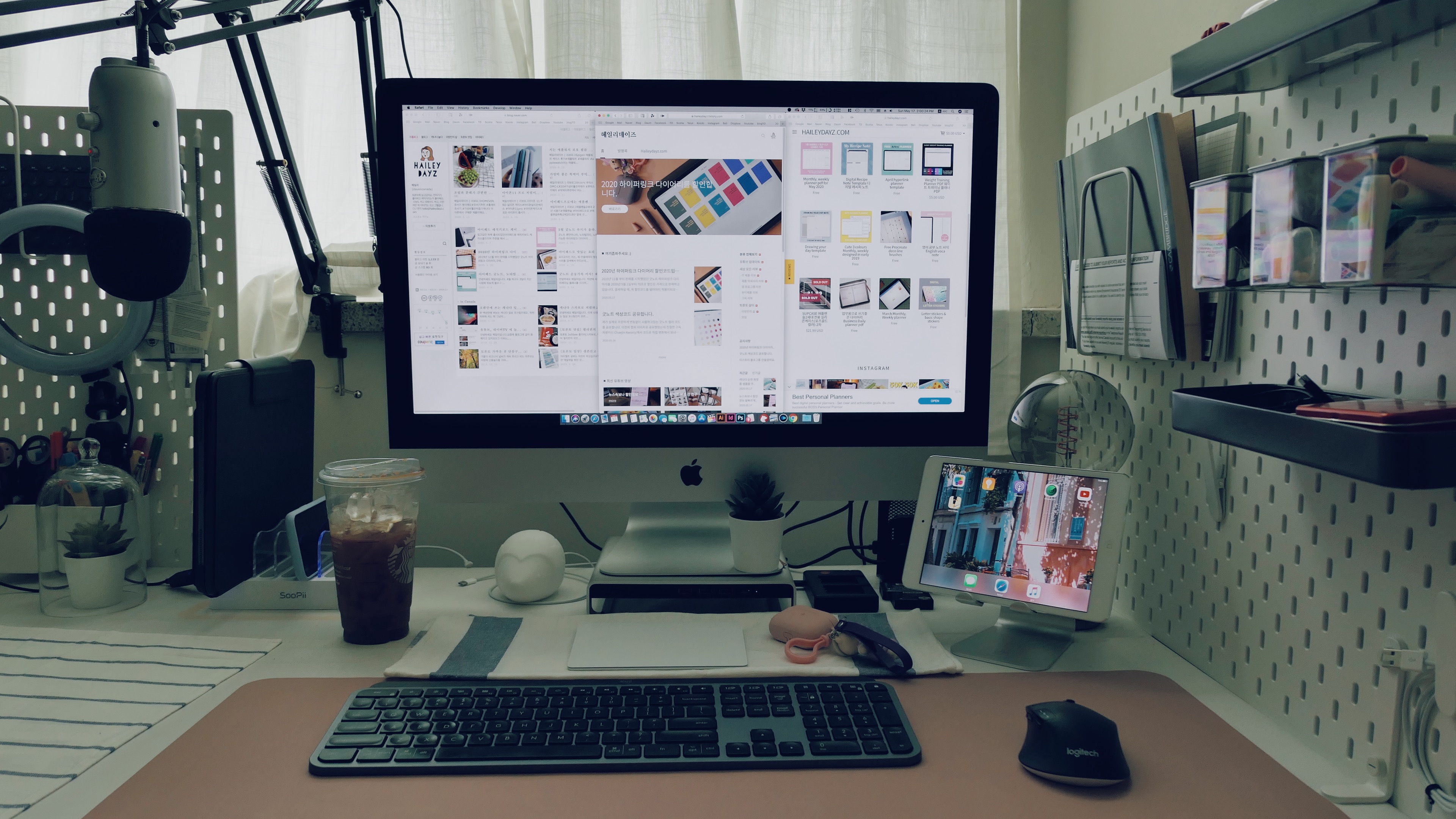 아 그리고 제가 아이맥 사용하면서 쓰는 키보드와 마우스는 로지텍 MX Master 키보드랑, 마우스는 M720 입니다(마스터 마우스는 남편이 가져갔어요). 그리고 트랙패드는 영상편집할때만 쓰는 편이예요! 또 아이맥 아래에 받쳐져있는 사테치 스탠드는 예전에도 추천한적있는데 정말 좋아요! 아이맥 뒤에 막 이것저것 꽂았다가 뺐다가 쓰기 힘든데 이 스탠드 쓰면 앞에서 편하게 낄 수 있으니 아주 짱입니다 최고예요!