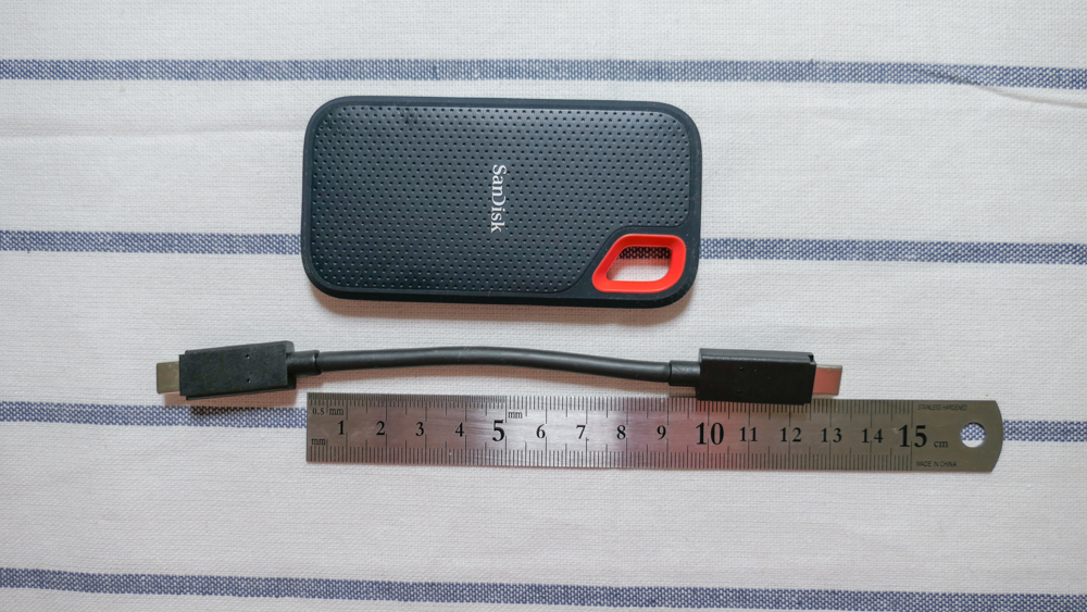 자꾸 샌디스크랑 비교하게 되는데, 동봉되어있던 USB-C 케이블도 크루셜꺼가 5센치는 더 길어요. 샌디스크꺼 받고나서 아씨 이걸 아이맥 뒷면에 연결하기는 좀 빡세겠네.....싶을정도로 케이블이 짧았거든요. 그거에 비하면 마이크론 크루셜은 감당할 수 있는 정도의 케이블길이였어요. 물론 두제품다 USB-A 타입으로도 사용할 수 있게 어답터도 제공합니다.