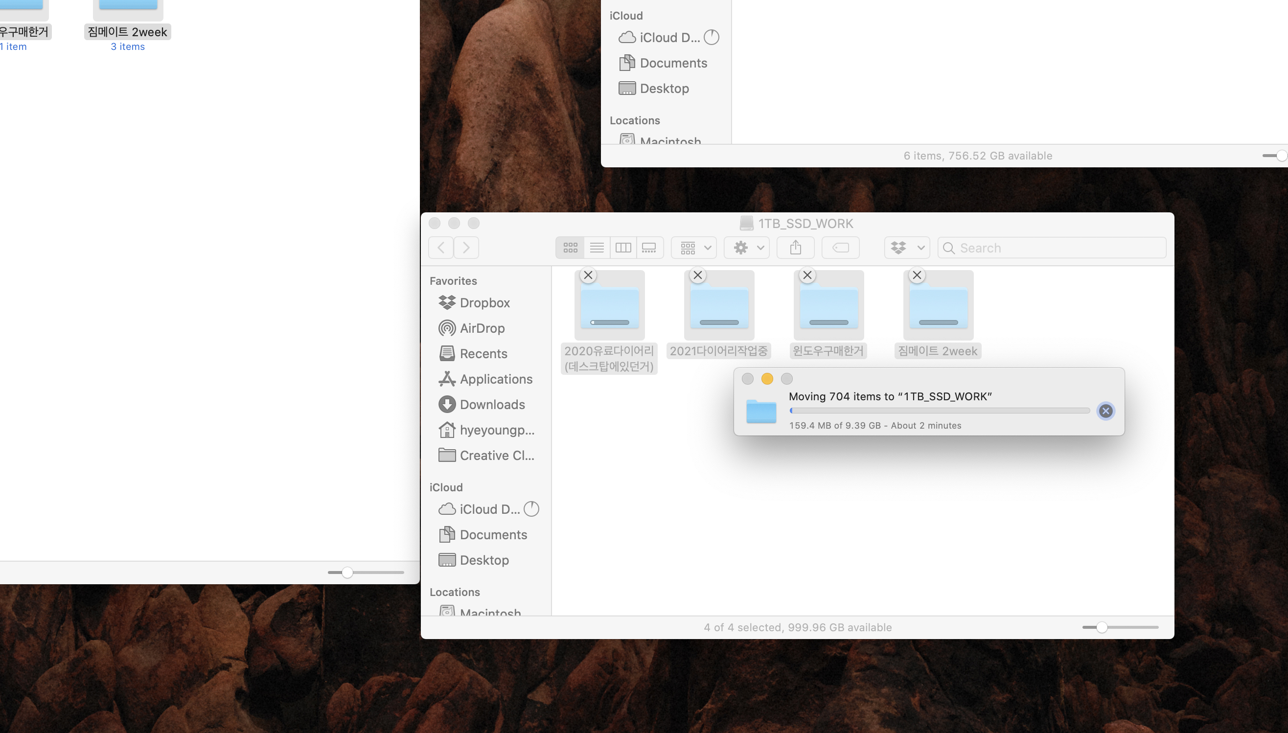 제가 가지고있는 파일들이 이미지도많고, 영상파일도 있고하다보니까 갯수도많고, 용량도 꽤 다양한 편인데 옮기는 속도가 정말 차이나요. 컴알못인 저도 HD와 SSD를 이용해보면 왜 사람들이 SSD 를 쓰라고 하는지 알겠더라구요.