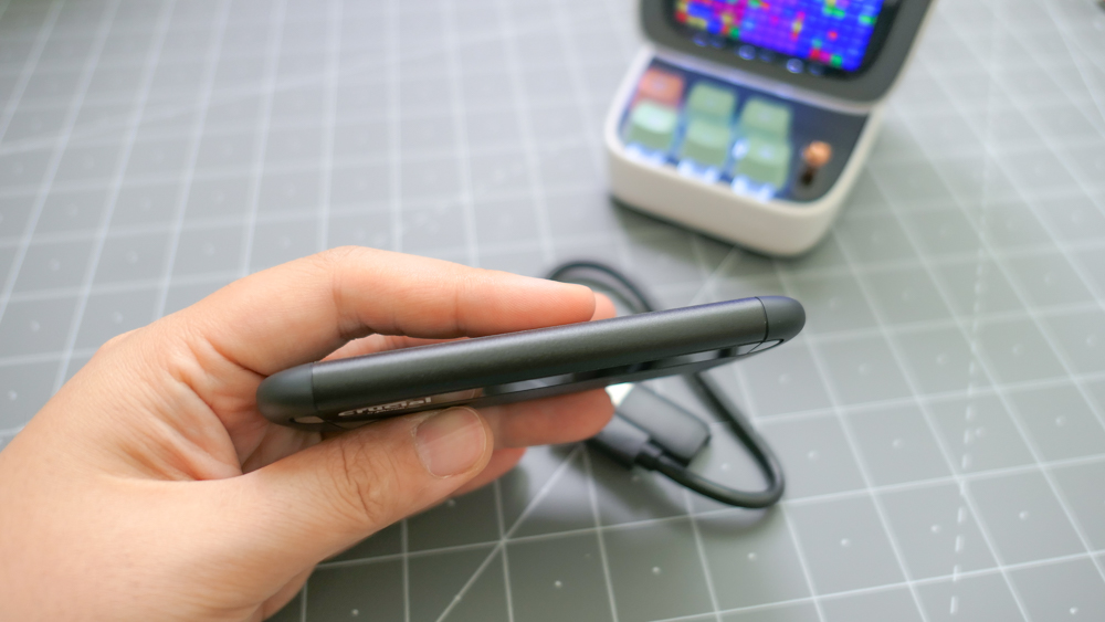 샌디스크꺼는 정말 잠깐 만졌는데도 겉의 재질때문에 먼지가 많이 붙었었는데, 크루셜 SSD 외장하드는 알루미늄재질같이 먼지 안붙는재질있죠? 그냥 말그대로 SLEEK -