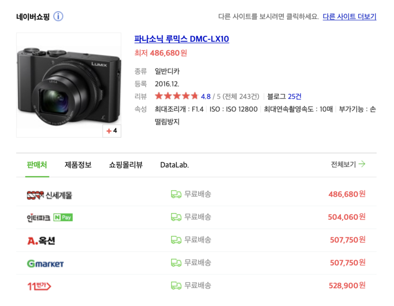 그 많고많은 카메라 브랜드 중에서 제가 구매한거는 파나소닉 루믹스 LX10 이라는 똑딱이(렌즈 교환 안되는) 디카예요. 사실 소니RX100 시리즈를 사고싶었는데 집에 소니가 있는데 왜 사냐고.. 해서..(엄연히 다른데 말이죠?)
